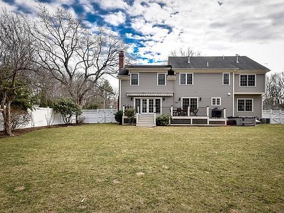 Incredible combination of house and yard! High ceilings! Over 5,400 sq ft of living space in this 5 bedroom center entrance colonial built by Fallon Custom Homes. White kitchen w/center island & desk area opens to FR w/ fireplace. All windows & doors along back of home overlook large flat fenced in backyard and mahogany deck. Mudroom off oversized 2 car garage. First floor office. Front to back living room & dining room w/ wainscoting & fireplace. Huge master suite w/ his/her walk-in closets plus marble spa-like bath. 3 large additional bedrooms w/ walk-in closets plus 2nd floor laundry. 3rd floor a big surprise w/ full bath plus 23 x22 bedroom. Lower level game room/exercise plus media/playroom w/ wet bar. Full bath w/ sauna. Perfect space for entertaining or relaxing!! Sprinkler system w/ rain sensor & high tech wiring w/whole house surround sound & indoor/outdoor speakers. Close to elementary school, Fells Market & walking trails!