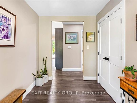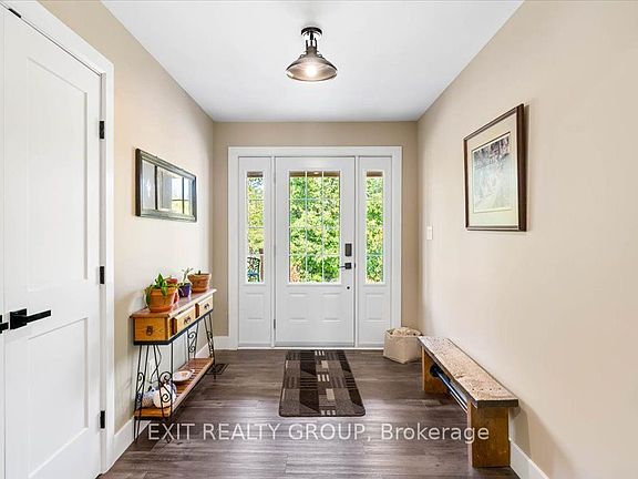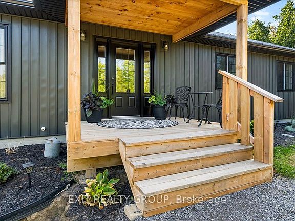 Experience stunning, convenient main-floor living in this beautiful 3-bedroom, 2-bathroom home, featuring a triple-car heated garage and access to a private, owned community waterfront. Set on a serene 1.8-acre lot, this property offers both privacy and charm. A welcoming covered front porch leads into a spacious foyer with a double closet. The bright, open-concept main living area boasts vaulted ceilings, luxury vinyl plank flooring, and recessed lighting. The gourmet kitchen showcases an oversized island, tall cabinetry, quartz countertops, pot drawers, and stylish pendant lights. The family-sized dining area features an impressive wall-to-wall pantry and opens onto an oversized covered deck-perfect for year-round enjoyment. The adjoining great room offers a large picture window and walkout to the yard. All three bedrooms are generously sized, with the primary suite featuring a walkout to the deck, a 3-piece ensuite with glass shower, a walk-in closet, and convenient laundry access. The 30' x 30' triple-car garage comes equipped with radiant in-floor heating. Entertain with ease on the expansive 50' x 12' covered deck, complete with pot lights and a propane BBQ hookup. Just steps away, enjoy your private community beach on Crowe River-perfect for fishing, swimming, paddleboarding, and kayaking. Additional quality features include ICF construction for a strong, energy-efficient foundation, a massive crawl space with concrete floors and walls for ample storage, a reverse osmosis water filter at the kitchen tap, UV water filtration system, a 195' drilled well, and parking for up to 12 vehicles.