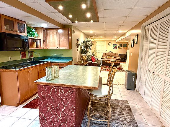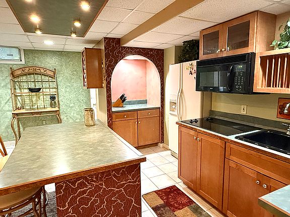 * Decorative kitchen with appliances and bar like seating