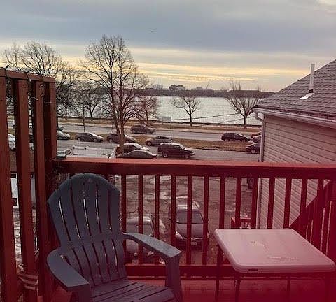 Great two bedroom with hardwood floors, equal size bedrooms, deck with water views, and one off street parking spot.