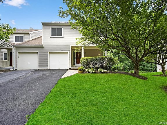 Nestled in the tranquil Wildflower Hills community, this spacious end-unit townhouse offers nearly 2,000 sq ft of living space across three well-appointed levels with an attached garage. The main level features a bright living room with a cozy fireplace, an open dining area, a well-equipped kitchen, a private deck ideal for outdoor relaxation, and a convenient powder room. Upstairs, the primary bedroom boasts an en suite bath and walk-in closet, while two additional bedrooms share a second full bath with a walk-in shower. The versatile lower level includes a wood-burning fireplace, a large living area, and a flexible room perfect for a home office, gym, or guest suite. Recent upgrades include a newer roof and gutters, energy-efficient solar panels, updated windows, and sliding glass door (2021). Energy-saving solar panels help reduce utility costs and improve efficiency year-round. Residents enjoy access to community amenities including a pool and tennis court—all in a peaceful setting with easy access to the Taconic State Parkway and I-84, making it an ideal commuter location.