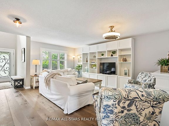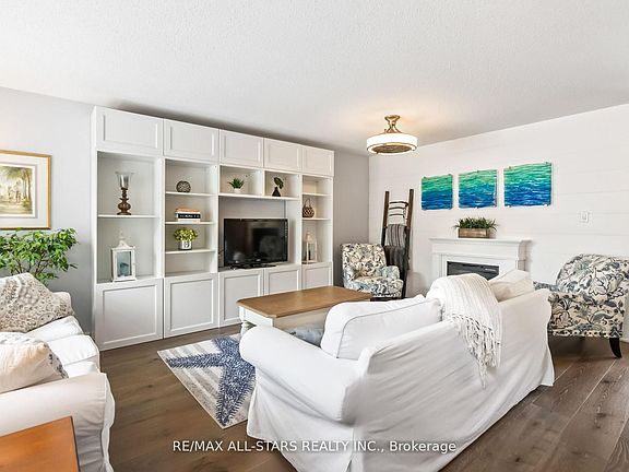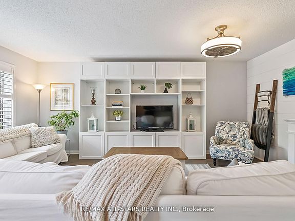 Welcome to this stylishly finished 2+1 bedroom, 3.5 bath FREEHOLD townhome offering 1,410 sq ft of thoughtfully designed space (per MPAC), nestled in a quiet, well-kept neighbourhood with quick access to South Balsam Trail. Built in 2009, this low-maintenance home blends comfort, function, and timeless appeal.The attractive exterior features a solid brick facade with stone and vinyl accents, interlock walkway, and an interlock extended parking pad (2015) for an additional vehicle. Enjoy a landscaped backyard retreat with a pergola with roller shades, interlock patio, riverbed rock gardens and shed. The single-car garage (door updated 2018) is drywalled, clean, and equipped with opener and remote. Inside, the main floor offers wide plank hardwood flooring (2020), California shutters, and elegant updated lighting. The spacious foyer opens to a dramatic two-storey ceiling and stylish powder room (2018). Relax in the living area with custom built-ins, a shiplap feature wall (2021) with included glass art installation and electric fireplace.The open-concept kitchen and dining area includes granite counters, wood cabinetry, stone backsplash, and Samsung black stainless appliances (2017). A patio slider leads to your private outdoor space. The main floor also features a large principal bedroom with 4pc ensuite and two closets, main floor laundry, and interior garage access.Upstairs offers a spacious second bedroom (no closet), updated staircase, wide plank laminate (2022), and a 4pc bath. The finished lower level (2020) includes a bright recreation room with barn board accents, kitchenette with quartz counter, two bar fridges (2021), and an office space with sliding barn door. A third bedroom with dual walk-in closets and a full 3pc bath complete the home. A perfect blend of style, comfort, and ease of living. Updates include: Roof replaced in 2023 with warranties, AC 2015, Staircases (2020 and 2022), Backyard Landscaping (2015)