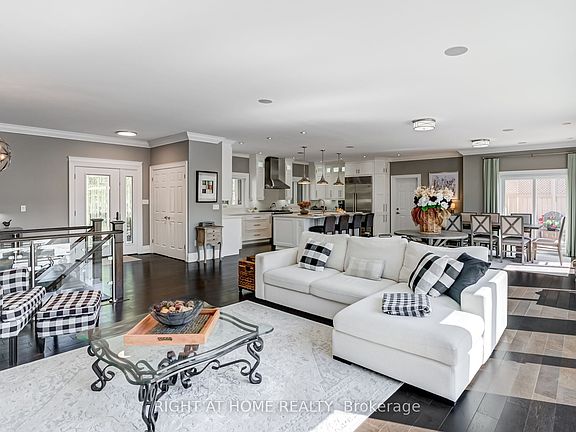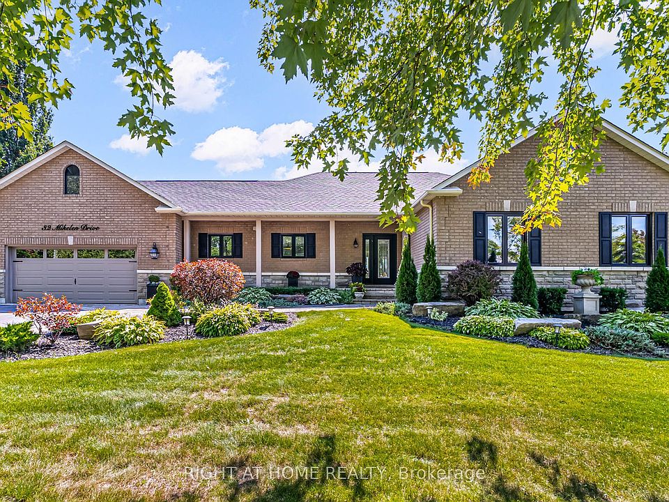 Welcome to 32 Mikelen Drive, an executive bungalow nestled in one of Port Perry's most exclusive enclaves. This home offers the rare combination of timeless design, thoughtful upgrades, and a backyard oasis that makes every day feel like a retreat. Set on a generous 104 x 277 ft lot, the property greets you with manicured landscaping and a welcoming facade. Inside, an airy open-concept design unfolds, anchored by a chef's kitchen with custom cabinetry, a sprawling island, and premium Wolf, Sub-Zero & Miele stainless-steel appliances. The adjoining dining and living areas flow seamlessly to the expansive 64 x 20 ft deck - perfect for entertaining or quiet evenings at home. The primary suite is a private retreat, featuring a spa-inspired ensuite with heated floors and a freestanding tub. Two additional bedrooms and a second full bath complete the main level, while hardwood runs throughout, adding warmth and elegance. Downstairs, the fully finished lower level expands the living space with a sprawling rec room, complete with engineered hardwood; a guest bedroom, a full bath, and a versatile bonus room - ideal for hobbies, fitness, or home office needs. Step outside and discover a backyard sanctuary: a heated inground pool surrounded by stone patios, lush gardens, and mature trees. Whether its hosting summer gatherings, enjoying a morning swim, or relaxing poolside, this space is designed to be lived in and loved. Practical upgrades provide peace of mind: recent (6-8 yrs) - shingles, windows and doors, furnace and AC, water softener, and pool heater. A pool liner ('21), sprinkler system (21'), and a new 18kW Generac generator (owned) ensure convenience and reliability. All this, just minutes from Lake Scugog, Sunnybrae Golf Club, schools, and the charm of Port Perry's shops and dining.