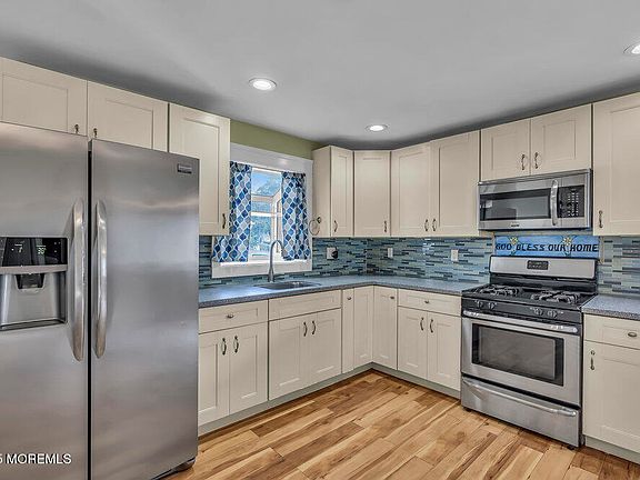 NO FLOOD INSURANCE REQUIRED! Step into the charming embrace of 32 Moran Place, nestled in the bayside town of Keansburg. This delightful 3-bedroom, 1.5-bath home offers 1,345 square feet of cozy living space, perfectly situated on a generously sized 7,920 square foot corner lot.