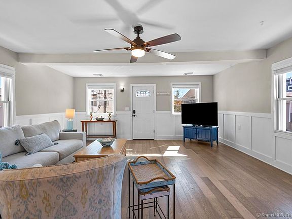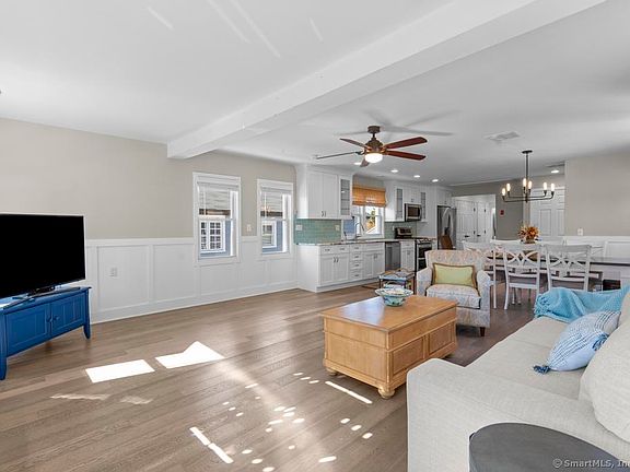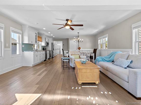 Welcome to this stunning 2-bedroom, 2-bathroom coastal retreat in the sought-after Point Beach community of Milford! Just a short walk to the water, this elevated beach bungalow offers beautiful water views and a bright, open layout that perfectly blends comfort, style, and coastal living. Inside, you'll find an updated kitchen with white shaker cabinetry, granite countertops, stainless steel appliances, and a sea-glass backsplash that brings a touch of the shoreline indoors. The dining area opens to a sun-filled living room featuring gleaming hardwood floors and elegant millwork throughout. The primary suite provides a tranquil escape with a remodeled spa-style bath showcasing marble-style tile and a glass-enclosed shower, while the second full bath is equally impressive. Step outside to enjoy the expansive Trex deck-perfect for entertaining or relaxing in the coastal breeze. Recent updates include a new roof~2016, furnace~2016, remodeled kitchen and baths ~2016, and new air conditioner ~2025. Flood insurance is just $943 annually and transferable to the new owner. Located just steps from Point Beach and close to downtown Milford, restaurants, train station, and major highways