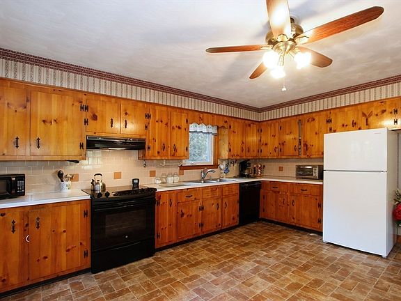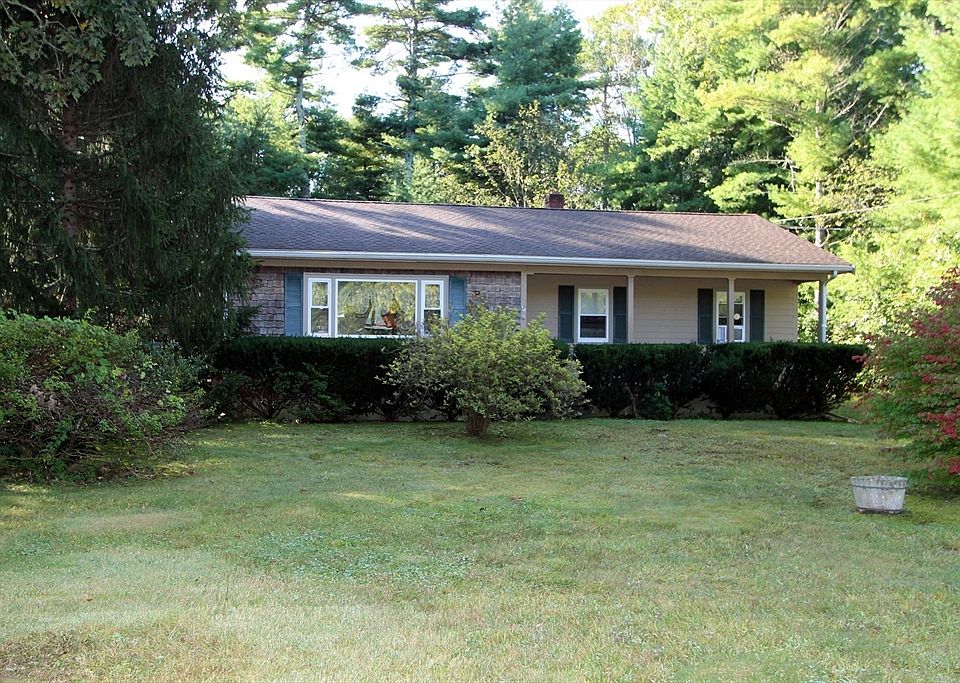 Discover this delightful ranch nestled in pines. This highly desirable single level home is move-in ready to make your own, The heart of this home is undoubtedly the large eat-in kitchen complemented by the expansive counters & original immaculate pine cabinets, The living room is large & spacious, enhanced by crown molding, nice floor space, entrance to the front farmer's porch, and large picture window overlooking the picturesque yard. Each bedroom also features crown molding, ceiling fans, hardwood floors throughout, and solid pine doors throughout. Upgrades include an updated furnace/oil tank, newer well pump, and newer vinyl windows. Outside, the property opens to a generous lot of 21,867 square feet, offering a peaceful woods view that promises tranquility and privacy alongside a deck perfect for enjoying the serene natural surroundings.