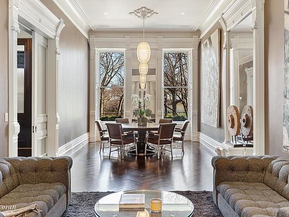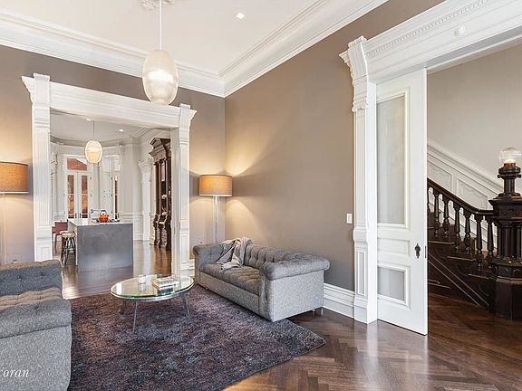 MORE THAN A HAVEN IN HARLEM Rarely is there a home with as much volume, scale, and provenance as 32 Mount Morris Park West. With 6 levels of living, this monumental, 24-foot wide and park-facing townhouse boasts five bedrooms, five bathrooms and two powder rooms across 7,000 interior square feet, as well as a full primary suite/floor, guest (or investment) apartment on the garden level, and over 2,000 square feet of landscaped outdoor space. Originally built in 1888 by John Dwight--the baking soda pioneer and owner of Arm and Hammer Co.--Number 32 Mount Morris Park West was intended for his daughter, Clara, and her husband, General Alexander Phoenix Ketchum, who served under Abraham Lincoln during the Civil War. The owner/designer took great care in their meticulous restoration of this extraordinary mansion, preserving much of the original detail while also modernizing the home for contemporary living. A generous elevator services all floors of the home--including the basement--while a multi-zone Central HVAC system and nine working fireplaces offer comfort and warmth. Sitting along the eastern border of the verdant Marcus Garvey Park in the Mount Morris Historic District of Manhattan, Number 32's façade is grand and inviting with its large, classic stoop and baronial front doors. Floor after floor, this incredible home offers security, sanctuary and sophisticated living in the center of Manhattan's dynamic Harlem neighborhood: PARLOR FLOOR With nearly 13-foot ceilings and a majestic, original staircase, this lofty floor welcomes you into the heart of the home with a formal dining area, comfortable family room, and an airy and bright eat-in chef's kitchen. With an imported granite slab center island, working fireplace and a French door-ensconced breakfast nook--that opens up to a gracious terrace overlooking the lush garden, replete with a Maple and Dogwood tree--the kitchen is an architectural dream with top-of-the-line appliances and a separate butler's pantry. SECOND FLOOR Two original cast iron columns and a fireplace, ~ 11-foot ceilings, and a beautiful library alcove add character and scale to a more formal living room on this floor, with lovely park views outside three extra-tall windows. This level also boasts a generous guest bedroom with en-suite bathroom and fireplace, as well as a perfectly appointed and windowed powder room. THIRD FLOOR The third floor offers over 11-foot ceilings and a nearly 1,300 square-foot, full-floor primary suite with three distinctive rooms: an unparalleled spa-level bathroom with double sinks and vanities, a cast iron and ceramic tub centered in front of a working fireplace, separate water closet, and a windowed steam shower with privacy screen; a fully customized, walk-in closet with a midnight bar; and a primary bedroom with an original fireplace and French doors opening to the back. A large windowed laundry room with double washer/dryer completes the floor. FOURTH FLOOR Two additional and substantial bedrooms with original fireplaces and dedicated, windowed bathrooms complete this upper floor, along with a galley kitchen in the middle that leads up to the fifth-floor bonus level. FIFTH FLOOR Unlike any townhouse rooftop in the city, the owner outfitted an impressive and bright glass-enclosed gym/solarium in the center of this floor for an indoor/outdoor flow where the front-facing, decked terrace offers the perfect, landscaped roof with city and tree-top park views, and a rear terrace is home to a barbecue grill for alfresco dining and entertaining. GARDEN/RENTAL FLOOR A fully restored garden-level apartment with an open kitchen, primary bathroom and additional basement bonus room--with a separate powder room--is perfect for visiting family and friends, a staff residence, or for additional income. A separate, fully-finished corridor on this level provides additional building storage and access to the ~1,000 square foot private garden sanctuary.