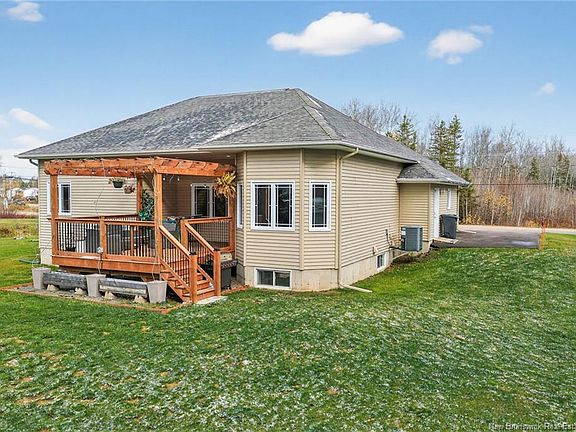 Charming bungalow in quiet Saint-Antoine, just north of Moncton — offering the perfect blend of comfort, light, and convenience. The open-concept kitchen, dining, and living areas are filled with natural light, enhanced by high ceilings and large windows that overlook the peaceful, wooded backyard. Step out to the new deck, where an outdoor hookup for a hot tub remains in place from previous owners — ready for relaxing evenings or entertaining. The stylish kitchen features stainless steel appliances, plenty of storage, and direct access to the attached garage with space for laundry and pantry needs. The primary suite is a true retreat with oversized windows, a luxurious ensuite featuring a soaker tub, and a walk-in closet. The main bathroom offers a walk-in tiled shower, while the good-sized third bedroom provides flexible space for guests, children, or an office. Designed for accessibility, this home includes wide doors, hallways, and a ducted heat pump system for year-round comfort. The lower level adds versatility with a one-bedroom apartment complete with its own kitchen, laundry, and bonus room — ideal for extended family or rental income. Sitting on nearly three-quarters of an acre with municipal water and sewer, and just a one-minute drive from the new Villa Des Dunes long-term care facility that is being build, this bright and beautifully designed bungalow is a rare find in Saint-Antoine.
