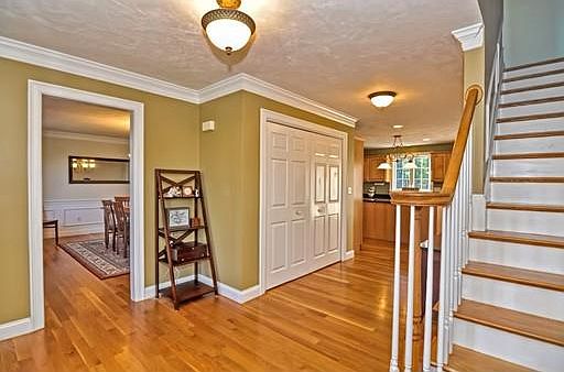 Great opportunity to own a home in the Meadows, a sought after cul-de-sac neighborhood. Close to the commuter rail to Boston's North Station, restaurants, shops, major routes and Bike paths. Beautiful immaculate condition colonial with expanded trexs deck overlooking the private back yard. Enter through the spacious foyer to an open floorplan with a formal dining room with wainscoting, Living room with glass french doors, large eat in kitchen which leads to the family room with cathedral ceilings and gas fireplace. Half bath, mudroom area and separate laundry complete the main level. The upper level consists of 3 guest bedrooms and full guest bath plus a large master bedroom with high ceilings, walk in closet, private bathroom with jacuzzi tub, double sinks and shower. The lower level is expansive and ready for your finishing touches. Hardwood flooring, granite counters and crown molding complete this home.