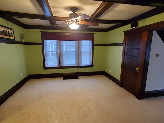 - Description: Beamed ceiling, carpeted, nice woodwork