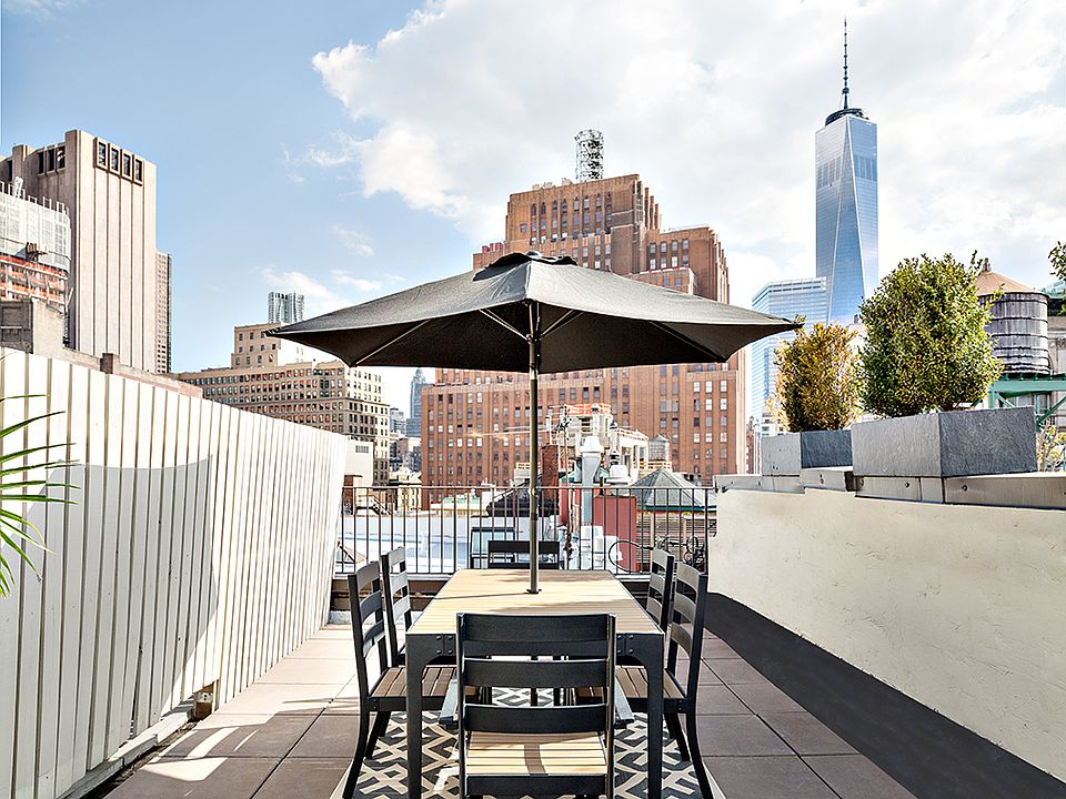 On one of the most sought-after streets in TriBeCa, this prewar duplex apartment embodies the quintessential elements of the New York loft-living lifestyle. From the private, keyed elevator, the grand main floor unfolds seamlessly, extending into the open living and dining areas. The chef's kitchen -- equipped with a Bertazzoni oven and matching hood, Liebherr refrigerator, and Bosch dishwasher -- makes prep & presentation for any party a snap. Upstairs, the scene-stealing 30 foot high skylight illuminates the path to the south-facing Master and Guest Bedrooms, which are complete with dueling walk-in closets, meticulously finished bathroom, and side-by-side washer/dryer. In classic New York condo style, the private roof terrace -- exclusive to this apartment -- provides access to awe-inspiring, 360 degree views of all Downtown Manhattan. Just steps to the Hudson River Park, and in the sought after PS 234 and 89 school district.Please Note - Additional second bathroom on second level has been approved by the building and is prepared for renovation.