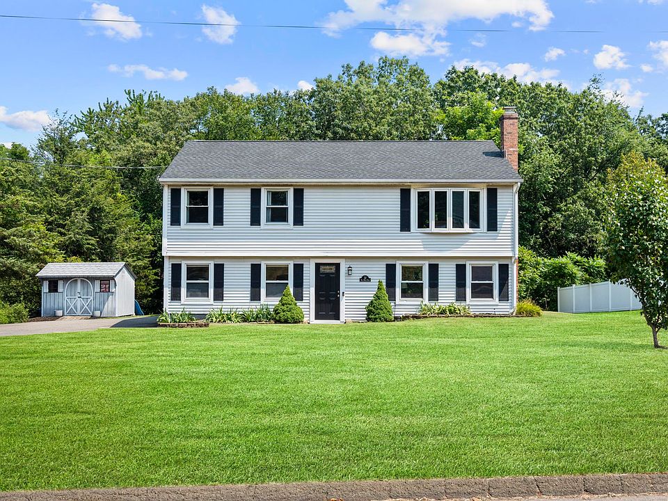 FOR RENT ! This unique raised ranch offers a rare layout-fully above grade-with versatile living spaces & thoughtful upgrades throughout. Located in a prime, private setting backing up to town-owned land, you'll enjoy peace, privacy & natural surroundings. Once you head upstairs, you're welcomed into a modern open-concept layout. The living room features a brand-new oversized bay window, flooding the space with natural light. It flows seamlessly into the dining area & remodeled kitchen, making it perfect for family gatherings. The kitchen includes newer cabinetry, stainless appliances & stylish finishes. The main bathroom has been remodeled & features dual sinks. The primary bedroom is generously sized & you'll find 2 well-appointed guest bedrooms-one with a custom paneled accent wall. While raised in design, the entire home is fully above ground, offering natural light on both levels. Upon entry, you can head straight into the living area or a few steps up to the bedroom level. The ground level includes: a large finished family room, a beautifully upgraded full bathroom with a walk-in shower & an adjacent laundry area, direct access to the attached garage, & a spacious bonus room, open to a bar area, with doors leading to the covered patio and backyard-ideal for entertaining or hosting overnight guests. Step outside & enjoy a deck overlooking a level, grassy backyard, A shed for added storage & a covered patio-perfect for shaded outdoor relaxation.