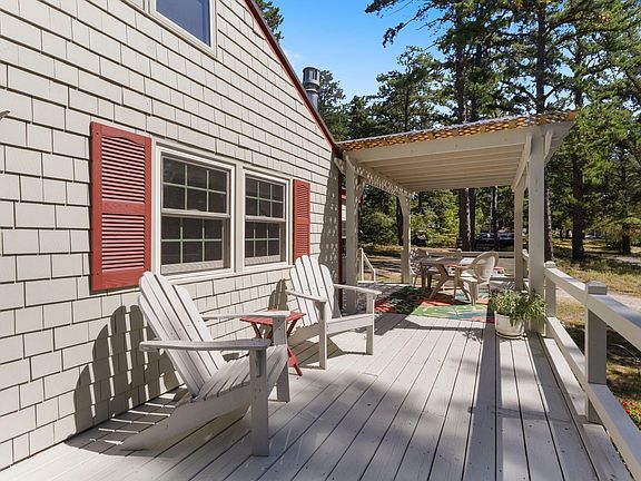 The current owners have transformed this property into a charming compound, featuring several small cottages for guests or creative use, and a delightful screened-in cottage—the ideal spot for enjoying peaceful summer evenings. The home itself feels spacious and airy, with soaring high ceilings in the kitchen and dining area that create an open and inviting atmosphere. A stackable washer and dryer are conveniently tucked away in a closet, maximizing the living space. Step outside to a very large deck, perfect for entertaining or simply soaking up the sun.