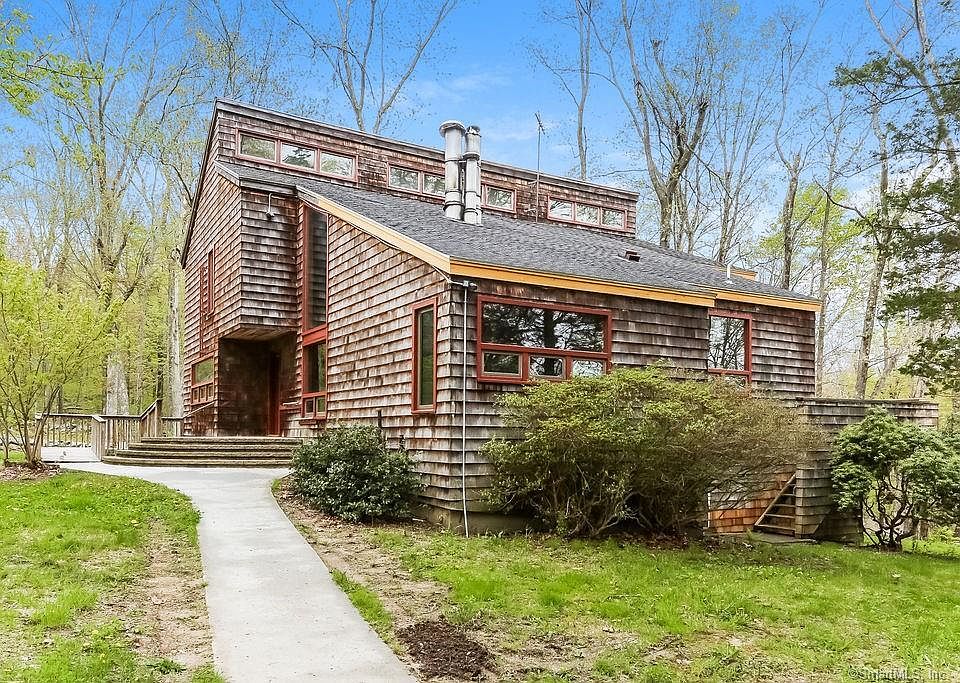 This contemporary home, designed by architect Gilbert Switzer & Assoc., offers a unique living experience. The property is situated in a serene, peaceful location on Fairwood Pond. It features a deck and two screened porches that overlook a pond, providing the perfect spots to enjoy nature's beauty. The home offers a two-sided stone fireplace, cathedral ceilings with exposed trusses, open concept layout, refinished hardwood floors, and is freshly painted throughout. The home was designed with large windows that bring in an abundance of natural light and provides panoramic views of the surrounding nature. These windows serve to connect the indoors with the outdoors, creating a bright and inviting living space. The home features four bedrooms. Two bedrooms are located on the main level and are separated by a common space and full bath. Two bedrooms are located on the second level and share a Jack & Jill bath, access to a screen porch, walk-in closet, and a cedar closet. The bedroom arrangement provides flexibility, accommodating different lifestyle needs. An oversized two-car garage with workshop space, whole house generator, stone walls and privacy make for the perfect retreat. Award-winning Amity School System. Close to Yale, Quinnipiac, SCSU and UNH. Come make this your new home. FINAL AND BEST OFFER BY TUESDAY AT 5:00 PM.