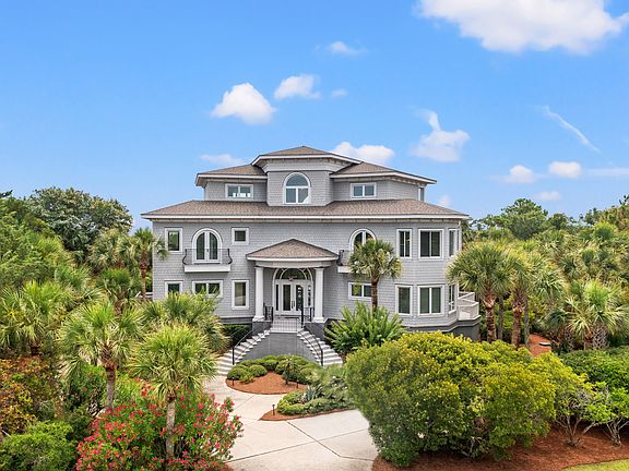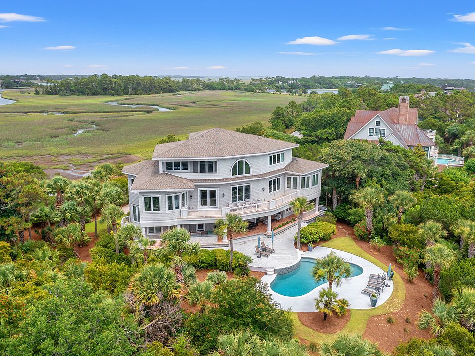 Additional features of this ideally placed estate, awash in spectacular views and offered fully furnished, include a workshop area in the ground-level four-car garage, mudroom, extra parking in the drive, elevator to all floors, impact-rated windows and doors, and sound, security, and irrigation systems. Nearby are the perennially popular Beach Club with its world-class dining and beachside cocktails, and strikingly designed Marsh House with its soaring roof lines, cocktail bar, grill, outdoor fireplace, and infinity pool deck overlooking the wide marsh and a tree line reminiscent of the African savanna.