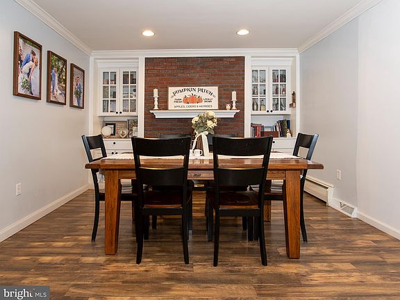 Peaceful kitchenElegant crown moldingVersatile flex spaceAiry inviting dining roomBrick-front exteriorLuxury laminate flooringPatio and yard