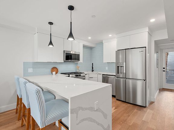 Beautifully renovated third-floor unit at 32 Orleans St, just minutes from Maverick T station with direct access to downtown, the Financial District, Suffolk University, and Logan Airport. This bright and open home features a modern kitchen with brand-new stainless steel appliances, sleek cabinets, and a luxury breakfast bar, a spacious living area with room for a Queen or King bed, and a striking designer bath with a floating vanity, sleek hexagon tile shower surround, and backlit mirror. Additional comforts include in-unit laundry, a step-in closet, and your own private deck with wrought iron railings. With luxury finishes throughout and close proximity to Piers Park, the Harborwalk, and popular spots like Tall Ship Boston, this rental blends convenience, style, and comfort in the heart of East Boston.