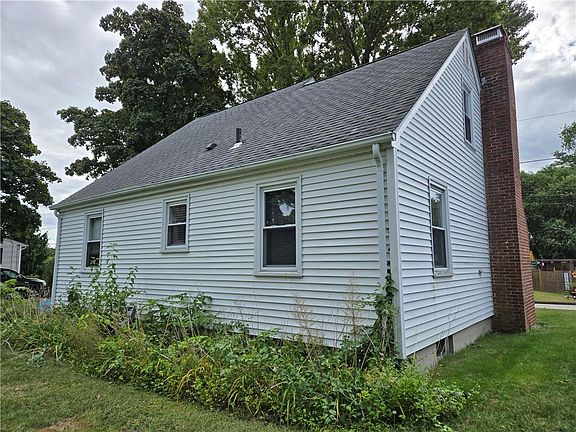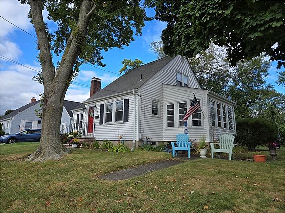 Wonderful three-bedroom one bath cape on a large lot with a detached two car garage. Property is in great condition, move in ready! Vinyl siding, updated windows, hardwood floors, and a brick fireplace in the living room. First floor bedroom with two additional bedrooms upstairs. Updated bathroom along with a three-season room with brand new flooring. City sewer and city water. The home is heated by oil but gas is available within the home. This home could easily be a four-bedroom home as the dining room which is being used as a family room does have doors and there is a closet.