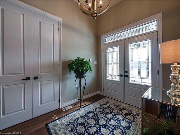 Absolute stunning 7 years new, former Model home by Brant Star. One of our most popular Keswick models. You'll fall in love with this open concept bungalow fully finished home, you're greeted by soaring 11' ceilings in the Great Room, a perfectly located floor to ceiling stone fireplace, warm engineered hardwood running thru the Great Room. This bright, cheery home has an abundance of natural light, the kitchen is well appointed with wonderful quartz countertops, built in microwave into a pantry, under cabinet lighting. This home has it all, large primary master bed with a striking ensuite featuring a ceramic and glass shower, main floor laundry room. A large cozy rec room with two lower bedrooms and a 3 pc bath, plus a bonus room. St. George is a hot spot for those looking for a quieter place to reside. Absolutely must be seen! Has it all, a long list of upgrades, fully fenced, landscaped, shed, deck, Kinetico water softener, Radon Reduction system and a HONDA 3000 WATT Generator on a separate box and the garage floor has a polyaspartic finish, alarm system, sprinkler system, and interlocking concrete walkway. Top of the line stuff! Appliances included...nothing to do but pack your bags and move in!