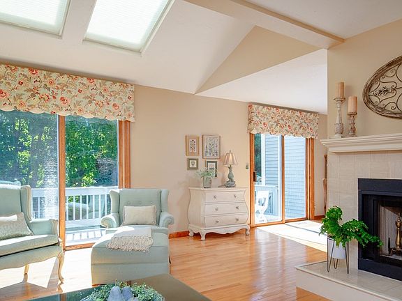 Center unit townhouse on Pemberton St. No common hallways nor elevators! Go from outside directly onto your porch and front door, overlooking professionally landscaped front yd. Inside, foyer opens to bright living room with cathedral ceiling & sky lights, elegant fireplace, & open floor plan to dining room. Dining room & living room have sliding glass doors to large, private, composite deck with great views of back yard & flowering trees. Kitchen offers breakfast peninsula, open floor plan to cozy family room with bright windows to front yard. Hardwood throughout the first floor! There's a convenient half bath in hall to the stairs. The second floor master bedroom has a cathedral ceiling with sky lights, a tiled fireplace & walk in closet, cathedral remodeled master & hall bath. There's a second spacious bedroom with large closet. Full walkout basement for additional future living space! Central Air. Unit's roof 5yrs young. Call for your private showing today!