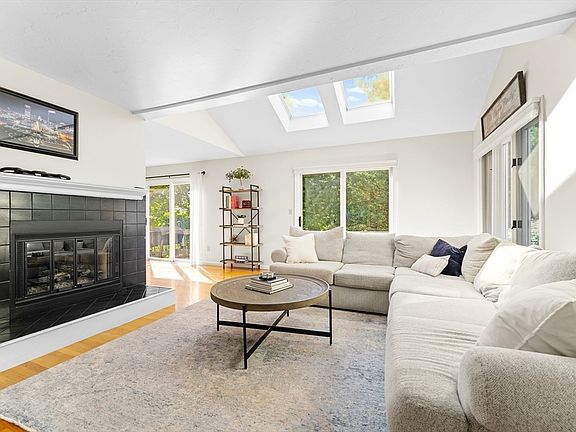 Sun-drenched townhouse in a private, wooded setting just minutes from Walpole Center! This spacious home features an open floor plan with hardwood floors throughout the main level. The living room offers skylights, a fireplace, and access to a large deck—perfect for entertaining. The updated kitchen includes granite countertops, a gas range, breakfast bar, and a flexible dining/sitting area. A formal dining room also opens to the deck for seamless indoor-outdoor living. Upstairs, the primary suite boasts a wood-burning fireplace, skylights, a large walk-through closet, and a renovated en-suite bath. All bathrooms have been updated, and all bedrooms are generously sized. The walk-out lower level offers excellent potential for additional living space or storage. Enjoy a quiet, secluded location just blocks from downtown, the commuter rail, bus lines, and local restaurants. A perfect blend of comfort, style, and convenience!