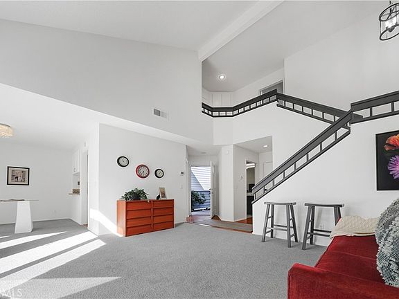 The downstairs living space has vaulted ceilings, a remodeld Kitchen, and a romantic Fireplace for those cool So Cal winter nights. Sun gently bathes the home through newer windows and dual sliders which flow out to the backyard with low maintenance turf and a garden area. It's perfect for relaxing, a BBQ year-round, or entertaining.