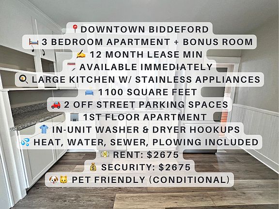 This 1100 square foot apartment home has 3 bedrooms and 1.0 bathrooms. This home is located at 32 Pool St UNIT 101, Biddeford, ME 04005.
