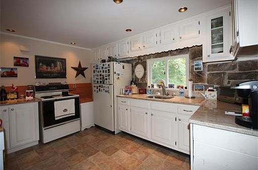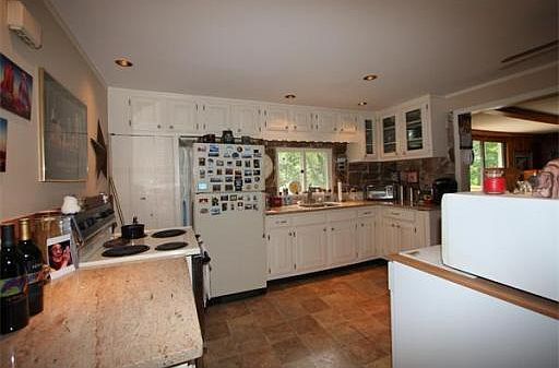 This Cape style home near Auburn/Oxford line is close to major routes. It has 8 Rooms, 4 bdrms, (two on first level, two on second level ) an open floor plan, stone fireplace, eat-in kitchen with granite countertops, undermount sink and quaint nook. Dining room slider opens onto private back deck with a woodland view. *newer roof *new septic *remodeled 2nd floor *new water heater