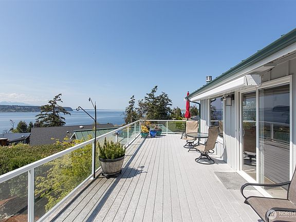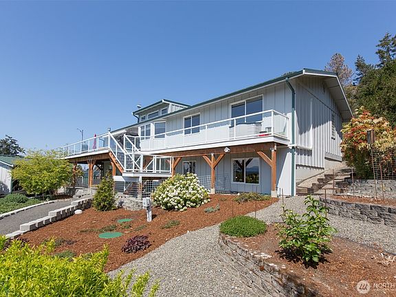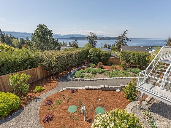 This exceptional 2-bedroom, 3-bath home offers stunning views of Discovery Bay & Olympic Mountains, nestled in the desirable Cape George Community. An expansive deck provides the perfect setting for entertaining or simply enjoying the serenity of the surroundings & privacy. Features include a two-car garage equipped with an EV-charging station, covered RV parking, & convenient single-level living. The lower level features a spacious great room, currently used as guest quarters—ideal for hosting guests. Meticulously maintained, the property also features low-maintenance landscaping and two 30-amp RV hookups. Benefit from a PUD credit for solar power, enhancing both efficiency and sustainability. Enjoy Cape George amenities.