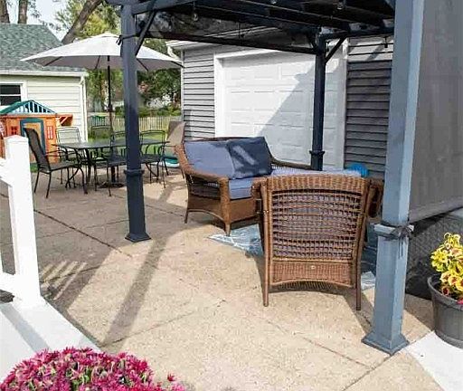 The Village ranch you've been waiting for! Spacious front yard, partially fenced in backyard, double wide driveway, 2.5 car garage w/ tandem doors, one opens to a side patio w/ included pergola w/ privacy screen. Light filled living room/dining room combo for open concept living, stone surround fireplace, arched entry ways. Gorgeous updated kitchen w/ quartz countertops, ceramic tiled back splash and SS appliances. Luxury vinyl plank flooring through out most of the home. Two updated full baths (one in the bsmt) Primary bedroom with large closet. Partially finished basement w/ laundry room and plenty of storage! Enjoy being able to walk to the village shops and restaurants! Showings start 9/27 @ 9:00am. Offers due 10/3 at noon.