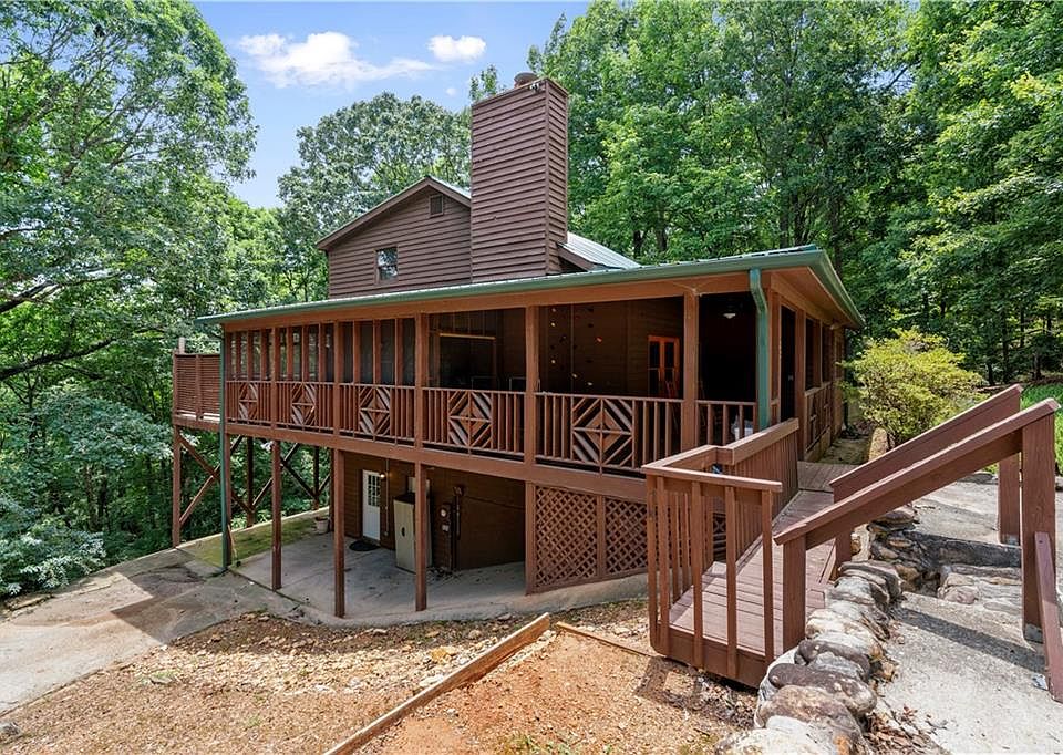 Here's the Private Mountain Retreat you have been looking for. Move-In Ready 4 bedroom 3.5 bath home perfect if you are looking for a private setting while still being close to town. Highlights include 2 ACRES OF LAND, tons of finished square footage, master on main, updated kitchens, huge closets, metal roof, unique wrap around porch, separate driveways and fully functional finished terrace level mother-in-law suite. As you exit your vehicle from the circular drive you will appreciate the endless possibilities of the wrap around porch that offers a screened area, covered space and sunny open section in the back that also offers privacy. The main floor offers a half bath for dinner visitors as well as a cozy fireplace, master bedroom, master bath and everything you need to enjoy single level living. Updated Kitchen includes new counters, backsplash and Stainless Steel Appliances. Tons of storage is available in the huge walk-in closets attached to each of the spacious bedrooms upstairs. Both bedrooms have access to a full bathroom upstairs and don't forget the gorgeous original pinewood floors carry on just like the main floor. The terrace level can be accessed from the main floor or its own separate driveway. It offers a full kitchen, living area, full bathroom, separate interior laundry hookups, large bedroom and additional Bonus Room. Spend time out on the porch, enjoying all the sights and sounds of nature while relaxing, sipping your coffee (wine) or grilling out! Great location less than 20 minutes from Helen, Ga for all entertainment, shopping, dining, and famous Helen festivals & attractions! This property is eligible for Chattahoochee River access in the private Chattahoochee Acres community. If Erin Buckalew Home Team shows the home to your buyer first then selling broker commission is contractually adjusted to 1%. Great for a cabin getaway or full time residence. Must See!