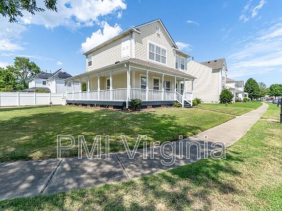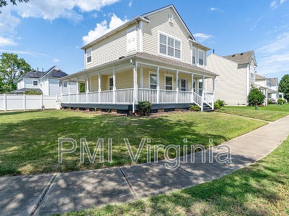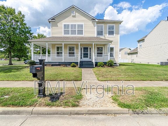 Relax on the wrap around porch with 4 bedrooms 2.5 bath single family house with large yard and attached garage. Charming modern home with open floor plan. Kitchen with 4 piece stainless steel appliance set. Vinyl tile throughout main floor. 3 bedrooms 2 baths on carpeted second floor. Primary suite has tray ceiling and walk in closet. Bedroom 4 is above the garage. Large partially fenced backyard. Located near marina, interstates, bases, Hampton University, shopping
