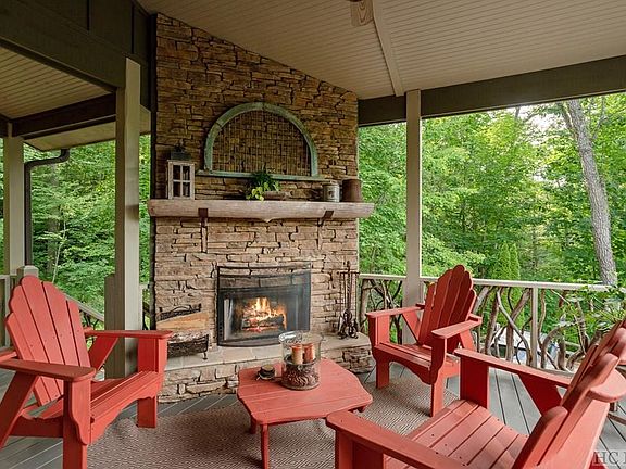 Enter the pinnacle of rustic modern luxury with this four-bedroom, four-bath home situated within the picturesque Trillium Links & Lake Club. This charming home sits on a gentle hillside providing a wonderful combination of year-round mountain, lake, and woodland views. The open concept floor plan allows for seamless enjoyment of the kitchen, dining room, and indoor/outdoor living spaces, making it ideal for entertaining friends and family. The perfect blend of mountain and modern, this home features an eye-catching triple laurel branch staircase, stacked stone fireplace, and painted shaker cabinets with quartzite countertops. The kitchen includes stainless steel appliances and a freestanding island, creating the perfect atmosphere for any culinary pursuit. Off of the great room, you will find an optional primary bedroom with the adjoining bathroom including a vanity with double sinks, a tub and separate shower. The primary bedroom is on the upper level affording privacy and beautiful views. Located on the home's lower level are two guest bedrooms with ensuite bathrooms and an additional gathering area. After a day of exploring the local hiking trails, beautiful Lake Glenville, or the shopping and dining in Cashiers, unwind with a book next to one of the home's stone fireplaces, The Trillium Links & Lake Club is a short drive away and features all your favorite amenities such as indoor tennis, golf, a fitness center, dog park, pool, restaurants, and more. Between the great community and this well designed, meticulously well-kept home, you're sure to fall in love!