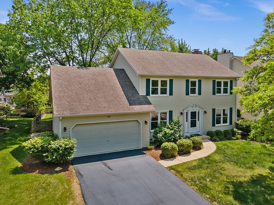 Gorgeous two story home on quiet tree-lined street in desirable Oakhurst neighborhood of Aurora. Neighborhood amenities include pool and clubhouse (optional membership needed), playgrounds, and parks. Award winning Indian Prairie schools! Close to Metra and I-88. Close to shopping and dining. Lush landscaping with mature trees, 2-car attached garage, large fenced backyard with deck and paver patio perfect for entertaining and relaxing. Step inside to find pleasing neutral decor, plenty of natural light, trim detail and thoughtful updates throughout. Inviting living room, formal dining room with chair rail. Fantastic eat-in kitchen including hardwood flooring, island with breakfast bar, tile backsplash and eating area. Spacious family room with floor-to-ceiling masonry fireplace with gas logs. 1st floor home office. Upstairs, bedroom sizes are generous and include the vaulted master suite complete with walk-in closet and private bath with double bowl vanity. Providing even more living space is the finished basement. Ideally located and competitively priced, this home is a MUST SEE!