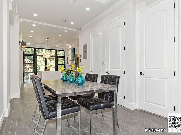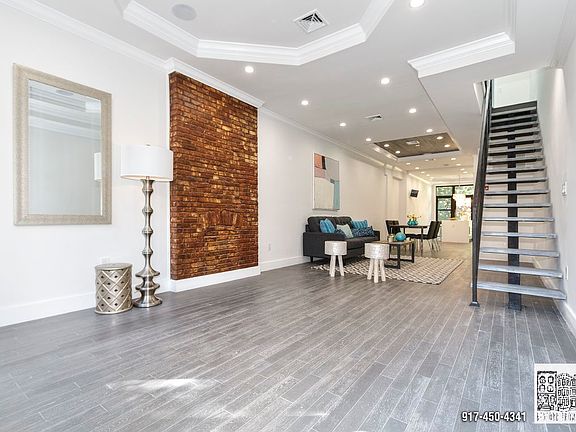 Meticulously constructed three story brick, architect-designed two family home in booming Bedford-Stuyvesant. This beautiful Bed-Stuy townhouse is perfect for anyone who recognizes lavish living. Enter the owners duplex to an open concept living room, dining room, and modern European style eat-in kitchen with gallery designed exposed brick and white oak hardwood floors. The spacious and bright kitchen contains custom cabinetry, quartzite counter tops, center island, stainless steel gas oven, smart touch screen refrigerator, and dishwasher. Walk through the floor to ceiling glass patio doors to a private steel patio only for the upper duplex; ideal for relaxing and entertaining guests. Upstairs you will find 3 large bedrooms, 2 full baths, skylights throughout, and washer/dryer hook-up. The master suite is complete with a unique glass in-closed bathroom with luxurious marble, large five-piece bath with walk-in shower, and double vanity. The Garden rental features 2 bedrooms, 1 1/2 baths and is tastefully done with high end finishes. The garden rental is also duplexed with a finished basement for extra living space and can easily fetch $2800/m. The home is also prewired for smart-home access, hard-wired security camera/video intercom system, multi zoned built-in Sonos speaker system, wireless nest temperature control, and central heating and A/C. Located just two blocks from the Utica A and C trains and situated between Atlantic Avenue and Fulton Avenue, you'll be centrally located to all the new restaurants, shops, and bars in the Bedford Stuyvesant and Crown Heights neighborhoods.
