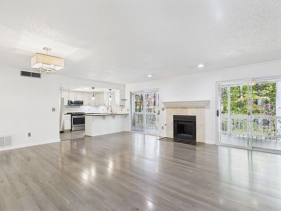 Marble-accent fireplaceHardwood-style flooringSpacious primary suiteUpdated lightingEn-suite bathDual closets