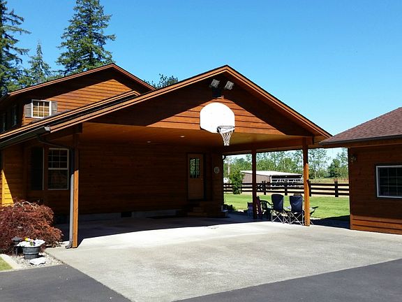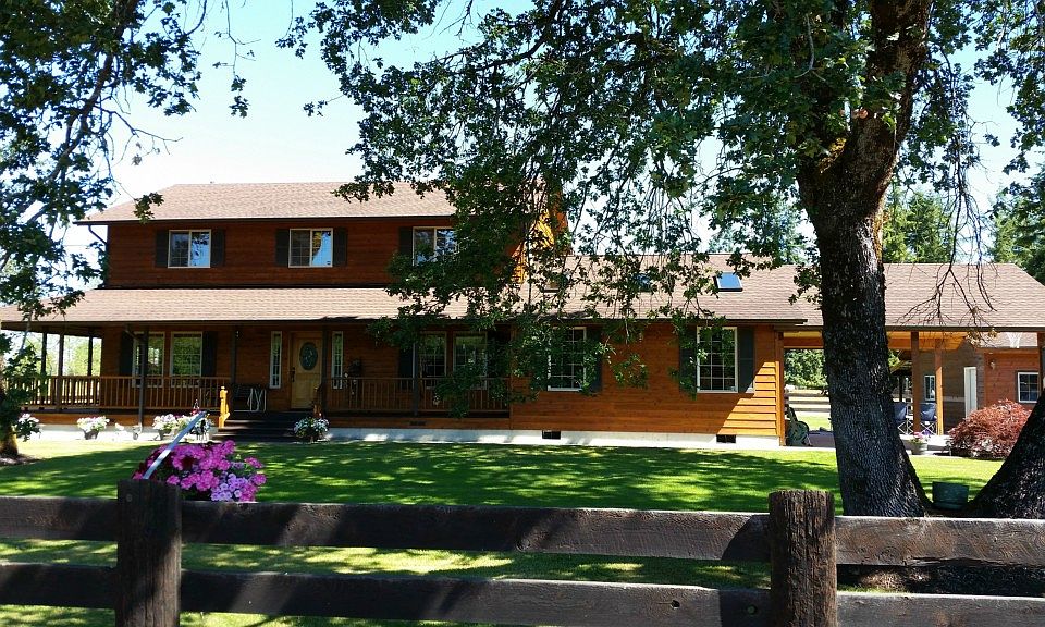 Wonderful Custom Built home with all the trimmings! Private setting, 8 inch beveled Cedar siding, lg covered wrap-around porch, enclosed soffits on all buildings, 2 car detached garage & shop, 9.33 acres high and dry, fenced for livestock, lighted Asphalt driveway. Large kitchen with bay window, Jen-air & SS dishwasher, large vaulted ceilings in living rm, tons of light & storage. 4 bedrooms, new carpet in all bedrooms, dog kennel, landscaped yd, patio, small barn, unfinished space above gar.