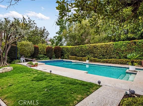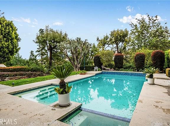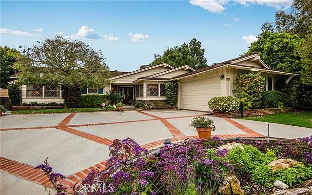 Highly desirable community Rolling Hills Estates One Level 4 Bedrooms, 2.5 Baths, Family Room, 2,370 Sqft Pool home on a 25,599 Sqft lot on a cul de sac street. **interior photos coming soon. Plank style flooring was installed in the living areas. This charming single-story home has a horseshoe driveway and features a desirable open floor plan. From the entry way you can access the bedroom wing, the family area, and the elegant rear living room with sliding glass doors onto the covered patio, pool, and lushly landscaped yard. Spacious dining room with chandelier and natural lighting. The kitchen features a breakfast bar, granite countertops, a gas stove top, and easy access to the garage. Adjoined to the kitchen is a large family room with a fireplace great for gatherings. The separate bedroom wing gives privacy to 4 bedrooms including the primary suite with a walk-in closet and sliding glass door to the pleasant covered large patio and glorious backyard. The spacious backyard is beautifully landscaped with mature trees and a flower garden and overlooks the nature of the canyon. 2 Car garage with plenty of space for storage. This property is close to award-winning schools, shopping, and freeways