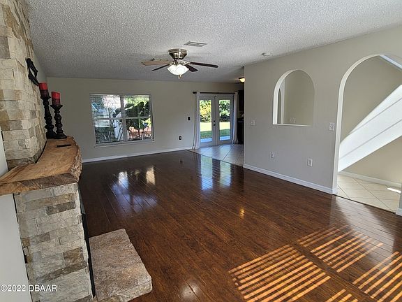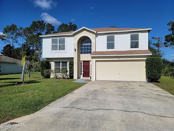 Great listing located on a quiet street in Seminole Woods. This two story home features 3 bedrooms, 2.5 baths plus the upstairs loft area has the potential for a fourth bedroom. On the first floor is a generous open living/dining room area with fireplace, laminate flooring and is great for entertaining. The kitchen does not lack for storage with an abundance of cherry cabinets with soft close drawers, travertine back splash, stainless steel appliances, solid surface counter tops and shiplap accented ceiling. All bedrooms are located on the second floor. Bedroom one is oversized with barn door accented windows, generous walk-in closet and en-suite bath. From the kitchen, French doors lead to the outdoor patio with extended, shaded decking that's perfect for entertaining. The yard has plenty of room for a pool and has a sprinkler system on a well. Newer shed is great for storage or would be the perfect workshop. New water heater 2022, HVAC 2019. Roof to be replaced prior to closing. Home is conveniently located near town center, shops, restaurants, banks and just a short drive to beautiful Flagler Beach. Call today for your private showing.