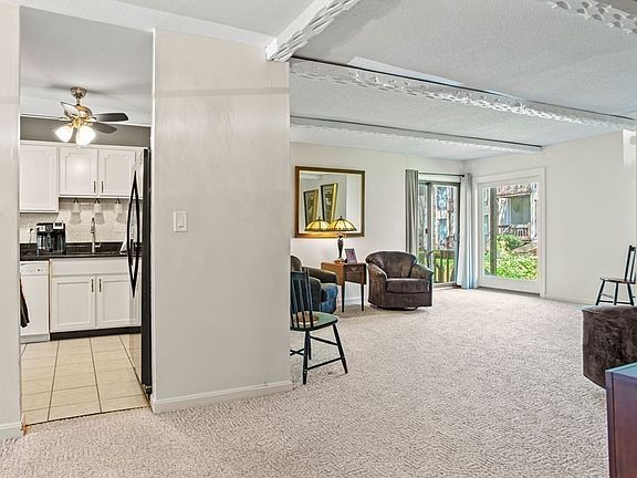 - Features: Ceiling Fan(s), Beamed Ceilings, Flooring - Wall to Wall Carpet, Exterior Access, Slider, Lighting - Sconce