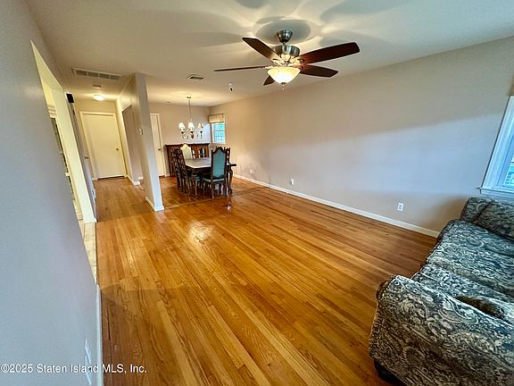Charming two bedroom high ranch in the heart of New Dorp, that is easily convertible back to a three bedroom home. Features hardwood floors throughout, a full bath on the main level, and a full basement that is partially finished with a 3/4 bath. Enjoy a private backyard ideal for relaxing or entertaining. Conveniently located near schools, shopping, and transportation.