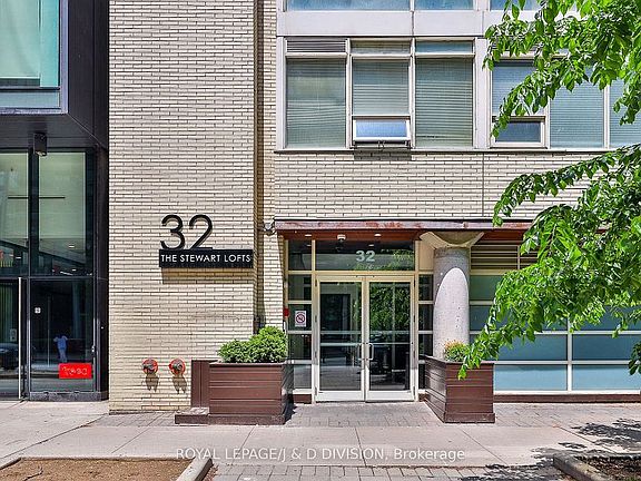 Experience the epitome of trendy urban living at The Stewart Lofts, a chic 8-storey boutique building at 32 Stewart Street in Toronto's vibrant King West neighbourhood. This modern soft loft residence, crafted by Harhay Construction in 2004, blends industrial charm with contemporary elegance, featuring open-concept suites with 9 to 10-foot exposed concrete ceilings, floor-to-ceiling windows, hardwood floors, stainless steel appliances, and spacious balconies or expansive terraces on two-storey penthouse units. Nestled between Bathurst and Portland, this pet-friendly haven offers a peaceful retreat from the bustling King Street, yet is steps from top restaurants, bars, cafes, and entertainment, with Victoria Memorial Park, Trinity Bellwoods, and the Rogers Centre just a short stroll away. With a 24-hour concierge, and unbeatable access to transit and the Gardiner Expressway, The Stewart Lofts is your gateway to a dynamic downtown lifestyle