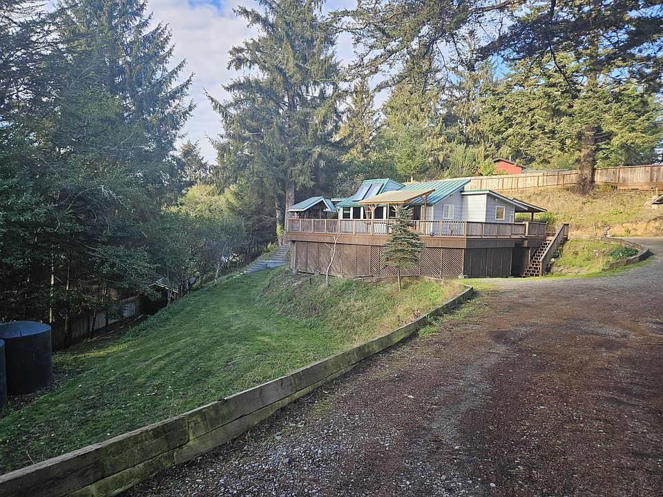Enjoy your own piece of private, completely fenced-in property. The home features all rooms with wood siding that has been professionally stained. Plant your garden, raise your chickens and/or goats below your home. The only cars driving by will be those living on your road. Electric gate closes automatically after you enter or leave. Enjoy your wraparound Trex deck year-round. Come see for yourself.