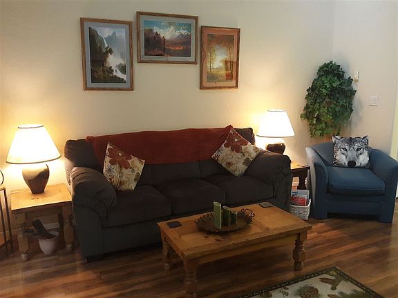 This is a beautiful and well-maintained 2bd/2ba townhome at a FANTASTIC PRICE! 2017-18 upgrades: new floors, washer/dryer, dishwasher, toilet. 2015 upgrade: new refrigerator. Vaulted ceilings and skylight. Back deck opens to beautiful manicured lawn, gazebo and woods. Perfect for sitting and enjoying the cool mountain air and wildlife. Close to the heart of downtown, golf course and trails nearby. Most furnishings convey. MOTIVATED SELLER. WILL NOT LAST LONG! Call for your personal showing!