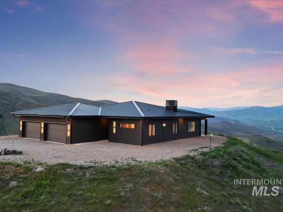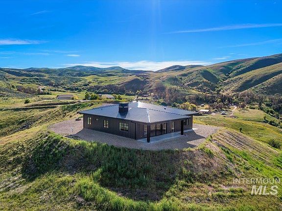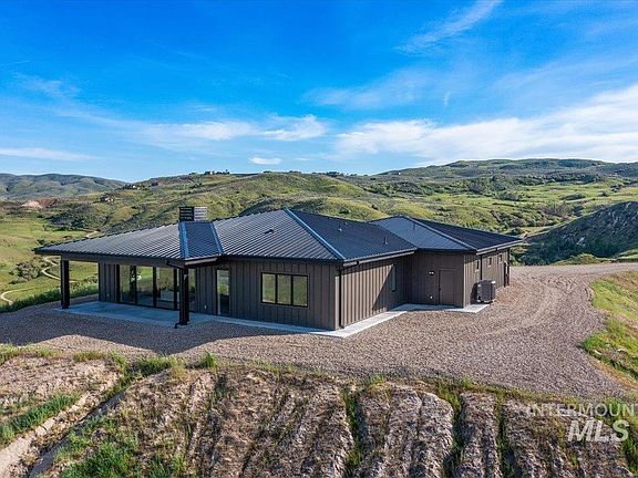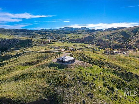 European mountain modern home on a spacious 26 acres just past Avimor. This single level ICF construction green ECO home is uniquely designed w/ custom components from Europe. Magnificent views in every direction including Bogus Basin and the Boise Front. Poised on a hilltop overlooking picturesque views of rolling pastures & mountains, this is the true definition of serenity. Gourmet kitchen includes Rift cut cabinets from Denmark, tambour black stained wood on island and vent hood, AGA 48" induction range from the UK, Brizo Jason Wu collection faucet and Blanco composite sink from Germany. Great room features a 20' slider and large picture window to embrace the amazing views. Also includes a Stuv wood burning stove from Belgium. Primary suite enjoys a spa-like bath w/ separate vanities w/ honed marble counters, walk in tiled shower and custom walk in closet to laundry room. Pella windows, steel standing seam roof and low maintenance Hardy cement siding.
