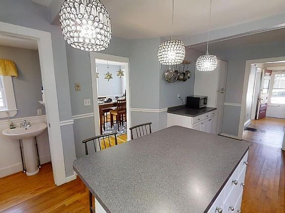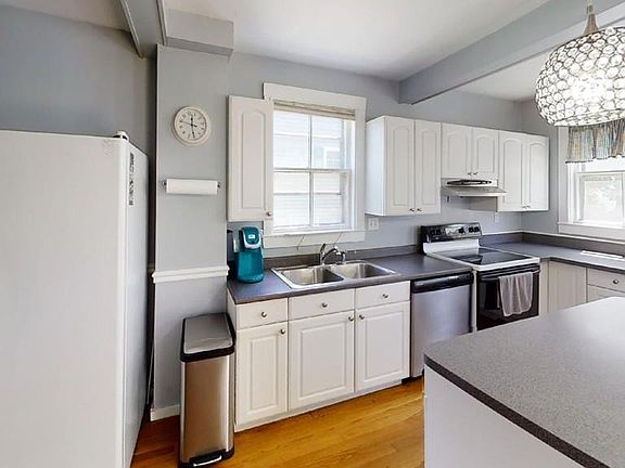Antique Colonial with front porch and back deck on a quiet side street of Winchester. Home has 3 bedrooms with 1.5 baths and is situated in a friendly neighborhood walking distance to Winchester center and commuter rail. The first floor is freshly painted and features hardwood floors . The kitchen features new lighting and a center island perfect for preparing meals. The kitchen has a space set up for use as computer station or work space . A half bath is also on the first floor .You will love the charm of built in China cabinet in the the dining room . Family room completes the first floor.As you go up the stairs you will pass a stained glass window on your way to three bedrooms . One bedroom has washer /dryer which can stay or be removed.Washer /Dryer hook up in the basement as well . The bathroom is updated with new fixtures and paint . This is a great home in a great town.