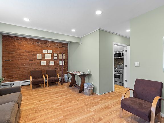 This garden level is beautifully renovated with a spacious living room with nice natural light, recessed lighting, exposed brick wall and hardwood floors. Remodeled kitchen with light wood cabinets, granite counters and stainless appliances (plus dishwasher). The bedroom has a large closet, and a tile bathroom completes the unit. Laundry in basement. Available now, with good credit and 1.5 months security. please ask about pets