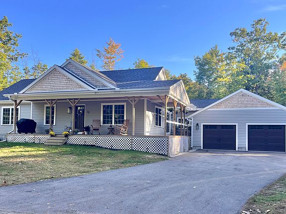 Step inside this like-new ranch constructed in 2021 on 3 acres! This has been thoughtfully designed from top to bottom with beautiful finishes from the granite countertops, to the stunning light fixtures, to the custom tiled showers and back splash in the kitchen... This will wow you from the moment you walk in! Enjoy a cup of coffee on the farmers porch, and spacious rear deck for entertaining! Heat pump offers efficient heating/cooling. Generator switch installed, making the home generator ready. Fireplace currently being used as a decorative fireplace but is plumbed for gas, just needs an insert. If you love recreational outdoor activities, this house is for you!! Sebago Lake 15 minutes away, ATV trail is directly across the street, along with many great hikes nearby. Just 40 min to Portland! Hot tub not included in sales price, but negotiable.