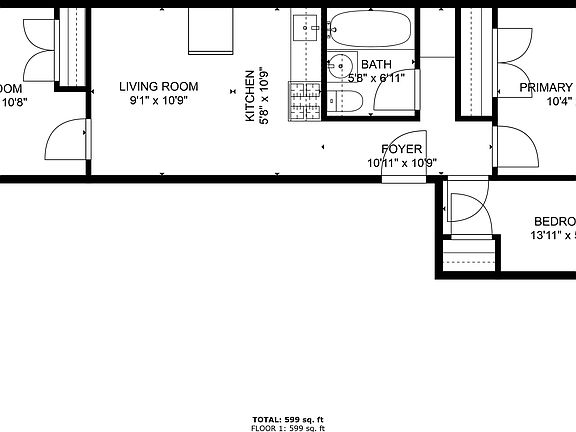 700 sq ft 3 bedroom apt all with windows and closets and this apt is the only one that has a large skylight in the common space.
