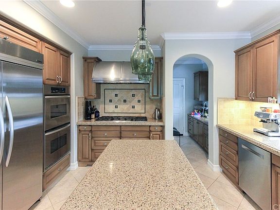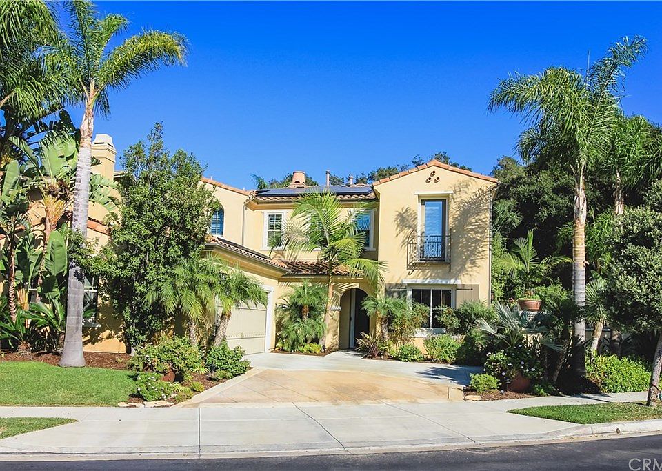 Sophisticated first-class residence in Talega of San Clementeas gate-guarded Catania collection. Its prime setting is without compare, located at the end of a cul-de-sac and backing to a beautifully landscaped hillside that provides the ultimate in privacy. Extra privacy is greatly appreciated in a tropical-inspired yard that hosts a salt water Pebble Tec pool and spa with waterfall, a built-in BBQ island with seating, and graceful palms that sway in the coastal breeze. It gets even better inside a spacious 2-level floorplan that measures approximately 3,547 square feet and displays five bedrooms, four baths, including a main-level bedroom/office with fresh upgrades, and an expansive entertainment room with two sets of French doors opening to the pool. Two granite islands and upgraded cabinets complement a designer kitchen with pantry, built-in desk, nook, and upscale stainless steel appliances including a six-burner gas cooktop and built-in refrigerator. A formal dining room, great room with fireplace and built-in media center, and a two-car garage with storage, epoxy floor, and Rogue gym equipment included complete the first level. An open bonus room easily accommodates a wide variety of uses and activities, the 2nd bedroom reveals a Juliet balcony, and the master suite boasts hills and palm tree views, a soaking tub, separate shower and walk-in closet with built-ins. Beaches, San Clementeas Pier, and Talegaas great schools and attractions are moments away.